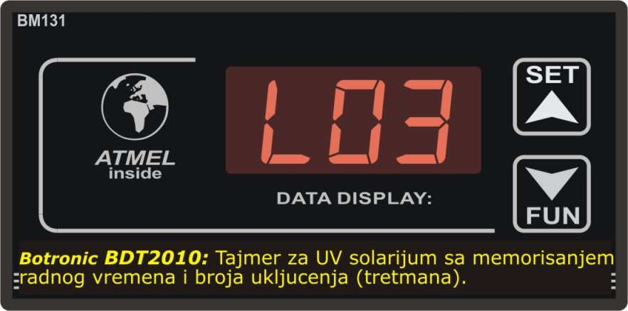 | BDT2010: DigProg Timer za UV solarijume sa memorisanjem radnog vremena i broja radnih ciklusa (tretmana) | ||