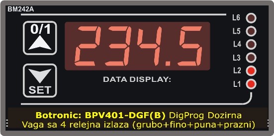 | BPV401-DGF: DigProg Dozirna Vaga sa 4 relejna izlaza (GRUBO+FINO+PUNA+PRAZNI) i spoljnjom START komandom | ||