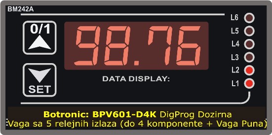 | BPV501-D4K: DigProg Dozirna Vaga sa 5 rel izlaza (Komponenta1-4 + izlaz vaga PUNA ) i spoljnjom START komandom | ||