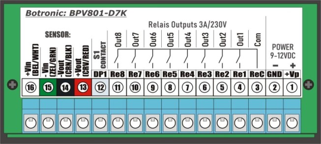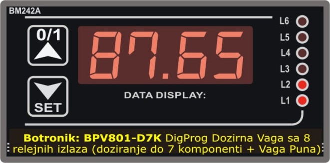 | BPV801-D7K: DigProg Dozirna Vaga sa 8 rel izlaza (Komponenta1-7 + izlaz vaga PUNA ) i spoljnjom START komandom | |||