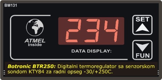 | BTR250-16A: DigProg Termoregulator sa sondom KTY84 za radni opseg od -50 do +250C i relejnim izlazom 16A | ||