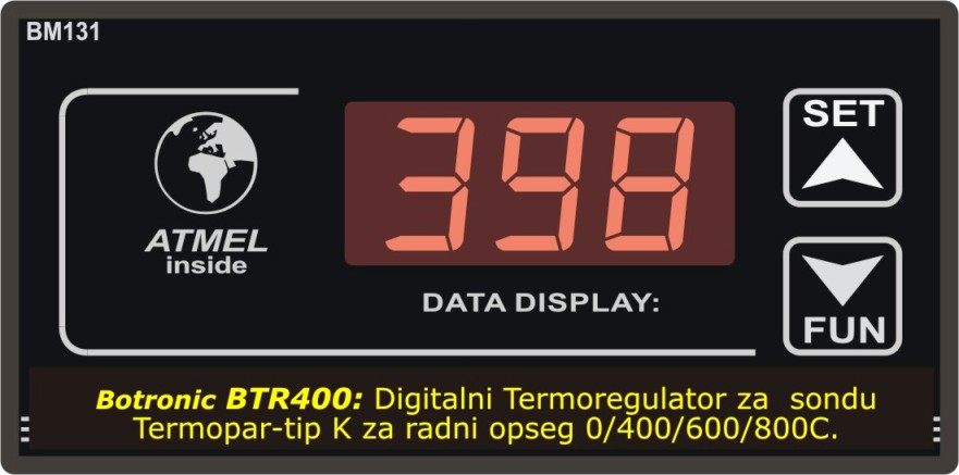 | BTR400-16A: Precizni Digitalni Termoregulator sa termo senzorskom sondom TipK za radni opseg od 0 do 400-600-1000C (zavisno od tipa termo sonde) i jednim relejnim izlazom | ||