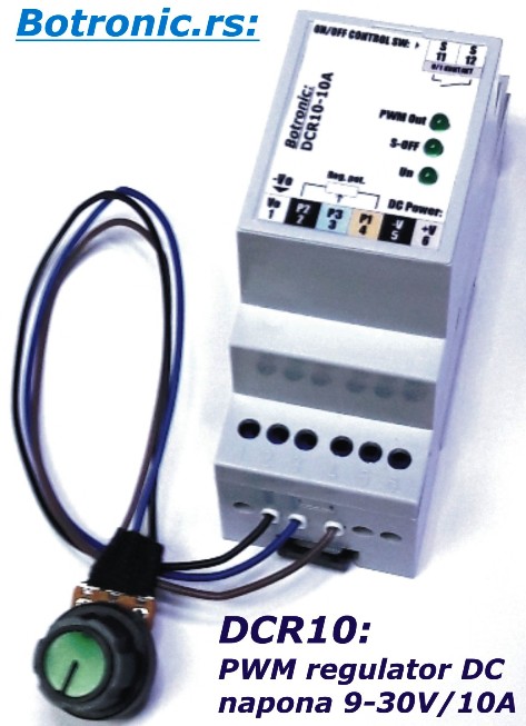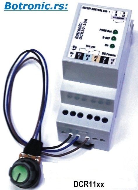 DCR10: PWM Regulator DC napona sa Soft Start funkcijom upravljan potenciometrom ili naponskim (0-5V) ili strujnim (0-20mA) signalom |