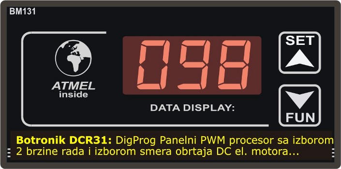 MPWM15: Digitalni PWM Regulator DC napona sa Soft Start funkcijom, 2 rezima rada (dve brzine) upravljan spoljnjim komandnim kontaktima i dva PWM izlaza... |